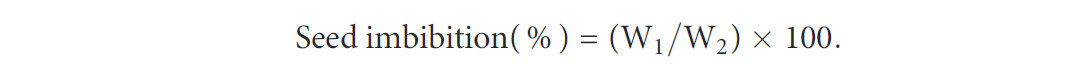 Сырой экстракт EtOAc был оценен на его влияние на набухание семян. Набухание семян проводили в соответствии с Turk and Tawaha (2003) с модификацией. Кратко, исходную массу семян сорняка (W1) регистрировали, а затем семена погружали в грибной экстракт на установленный период инкубации 12, 24 или 36 часов. Поскольку ежовнику требуется приблизительно 36 часов для завершения процесса прорастания (Takao et al., 2011), эти временные точки были выбраны для мониторинга физиологической реакции на каждой стадии прорастания. После инкубации семена промывали и снова взвешивали (W2), а значения водопоглощения определяли с использованием формулы: