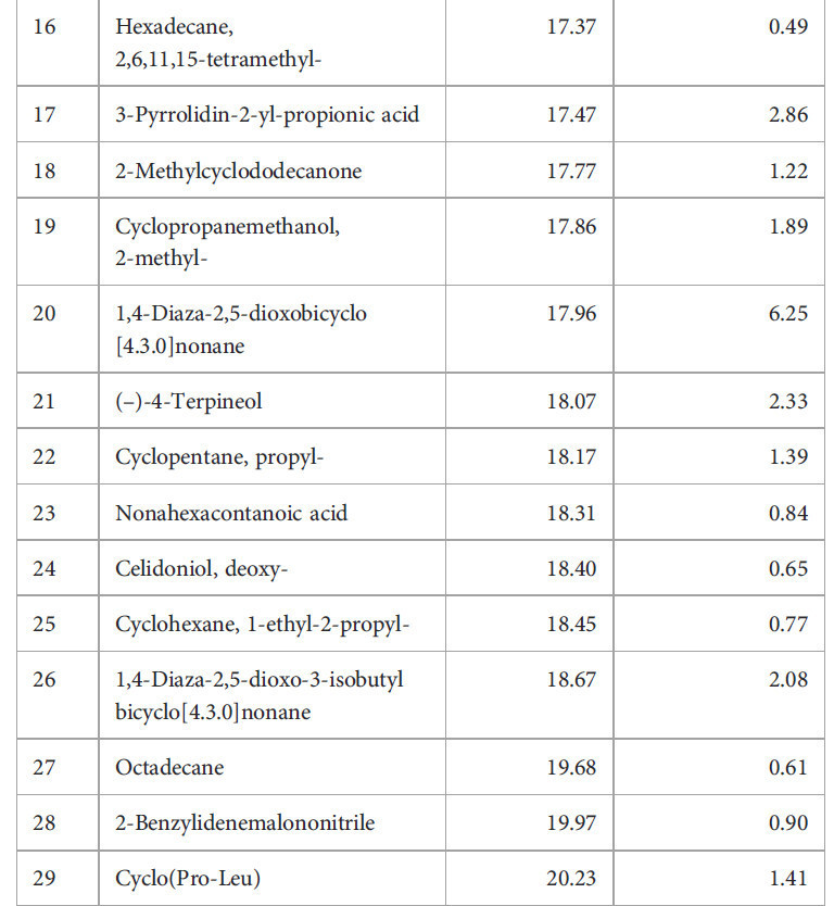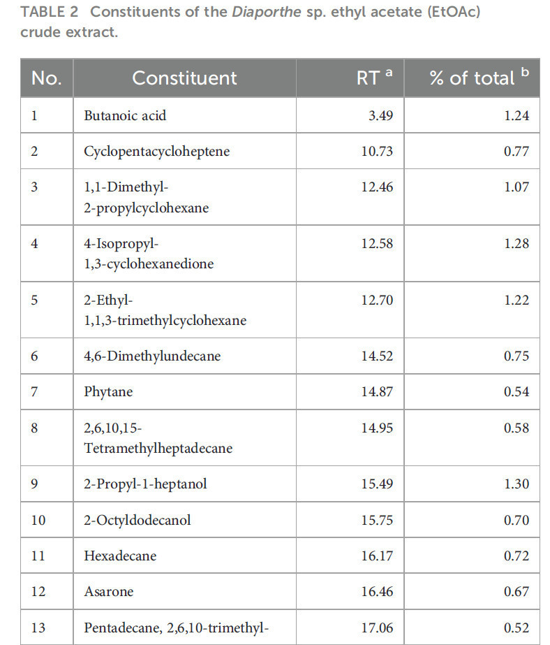 Таблица 2 Компоненты сырого экстракта этилацетата (EtOAc) Diaporthe sp.
